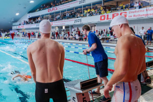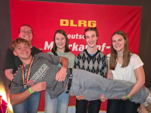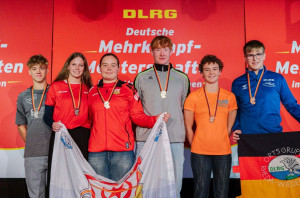 Zusammen mit den jeweils besten 32 Schwimmerinnen und Schwimmern jeder Altersklasse begannen die Einzelwettkämpfe am frühen Freitagmorgen im Hannoveraner Stadionbad. Die Schwimmer wählen aus sechs möglichen Disziplinen ihr vier Lieblingsstrecken, von denen am Ende die drei punktbesten Disziplinen in die Mehrkampfwertung eingehen. Für Lasse hat sich das harte Training der letzten Wochen ausgezahlt. Er konnte über alle vier Disziplinen starke Leistungen erbringen: Er startete über 200 m Hindernis mit 2:12,09 in den Wettkampf. Über 100 m Retten mit Flossen hatten seine neuen Flossen ihr Wettkampfdebut. Mit 0:52,42 schwamm er die drittschnellste Zeit in seiner AK. Schnellster war er über 100 m kombinierte Rettungsübung in 1:10,25, sowie auch über 200 m Superlifesaver in 2:20,03. Seine super Leistungen wurden mit der Silbermedaille in der AK 15/16 belohnt und gebührend gefeiert. Niklas Hiob startete in der AK 17/18 über 200 m Hindernis in 2:15,33, 100 m Lifesaver in 0:57,79, 100 m Retten mit Flossen in 0:52,19 und beendete seinen Wettkampf über 200 m Superlifesaver in neuem Württemberg-Rekord von 2:17,37 auf Platz 6. Selly musste sich nach krankheitsbedingter Trainingspause über 200 m Hindernis erst wieder ans Wasser gewöhnen. Über ihre weiteren Strecken konnte sie auf ihrer Erfahrung bauen und schwamm über 100 m Lifesaver in 1:11,08, 100 m Retten mit Flossen in 1:04,19 und 200 m Superlifesaver in 2:51,29 einen soliden Wettkampf und erreichte Platz 20.