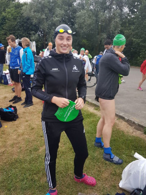 Ein besonderes Erlebnis waren die 1.500 m im Freigewäasser, die im See des Erholungsgebietes Blaarmeersen ausgetragen wurden. Nach 23:13 Min. war Kathi als zweitschnellste unter den 29 Schwimmerinnen im Ziel.