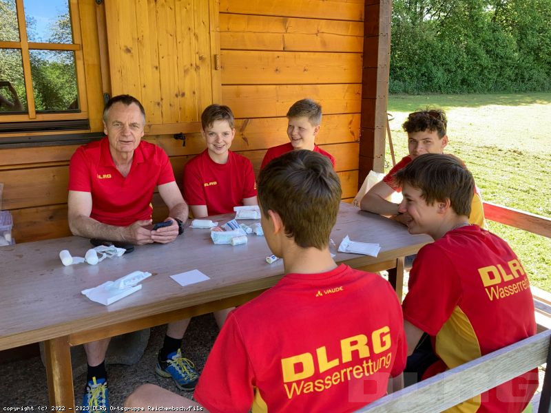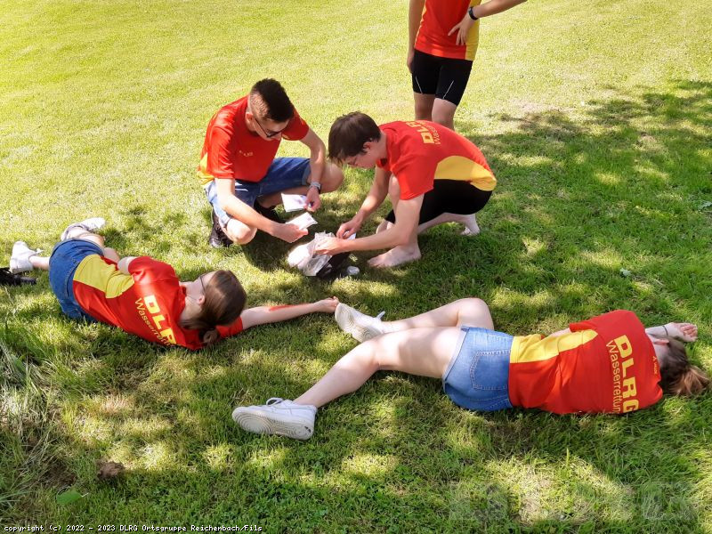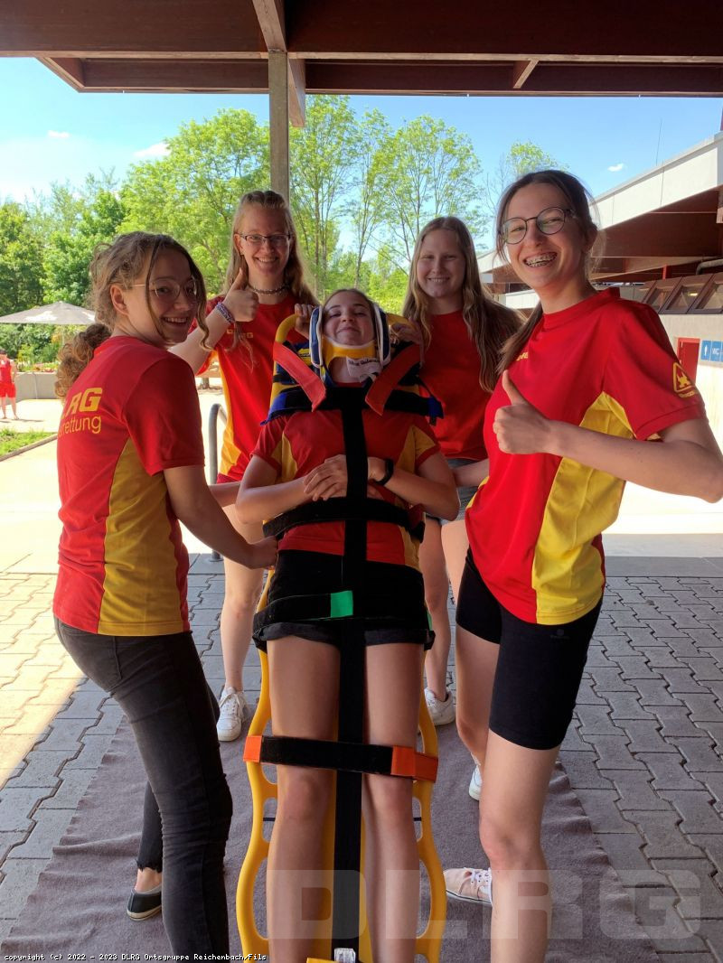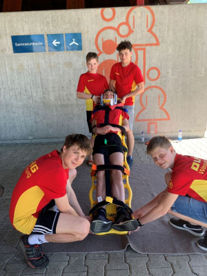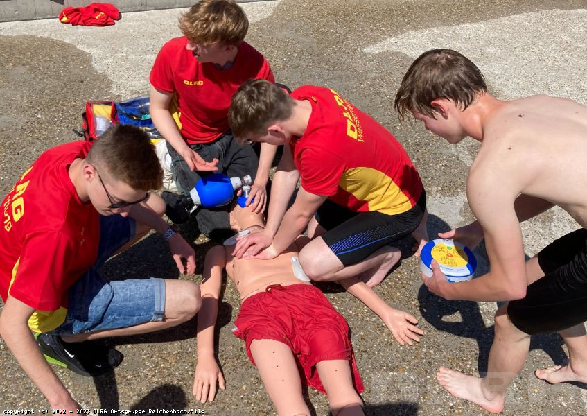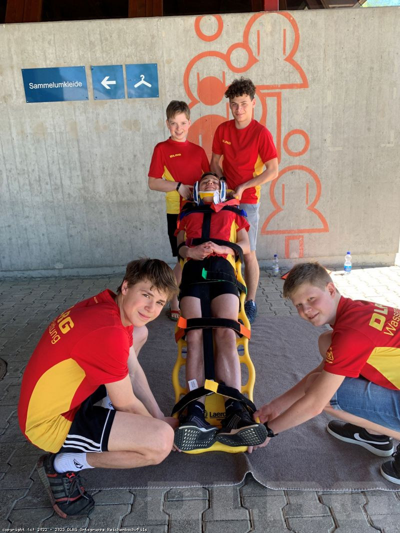 Letzten Samstag trafen sich unsere Rettungsschwimmer, um sich auf die kommende Freibadsaison vorzubereiten. An verschiedenen Stationen wurden die Kenntnisse über Sonnenstich, allergische Reaktionen, Verbände und Herz-Lungen-Wiederbelebung aufgefrischt. Neu im Programm war die Beatmung mit Beatmungsbeutel und Sauerstoffgabe und die Patientenbergung mit dem Spineboard. Ein herzliches Dankeschön geht an dieser Stelle nochmals an unsere Sponsoren Electrostar, Phoenix Living und der Zahnarztpraxis am Reichenbach durch die es uns erst möglich wurde, die entsprechende Ausrüstung anzuschaffen.